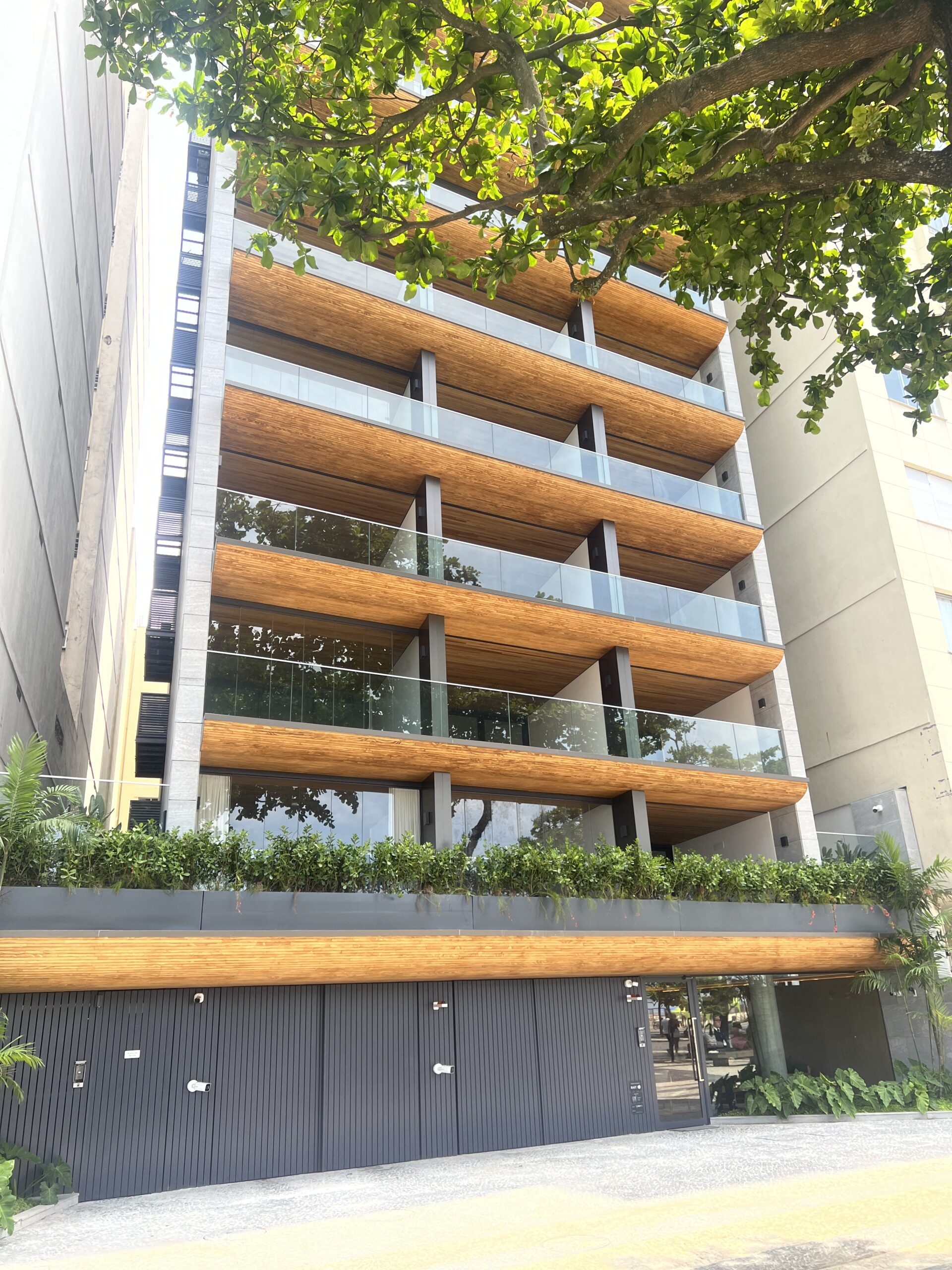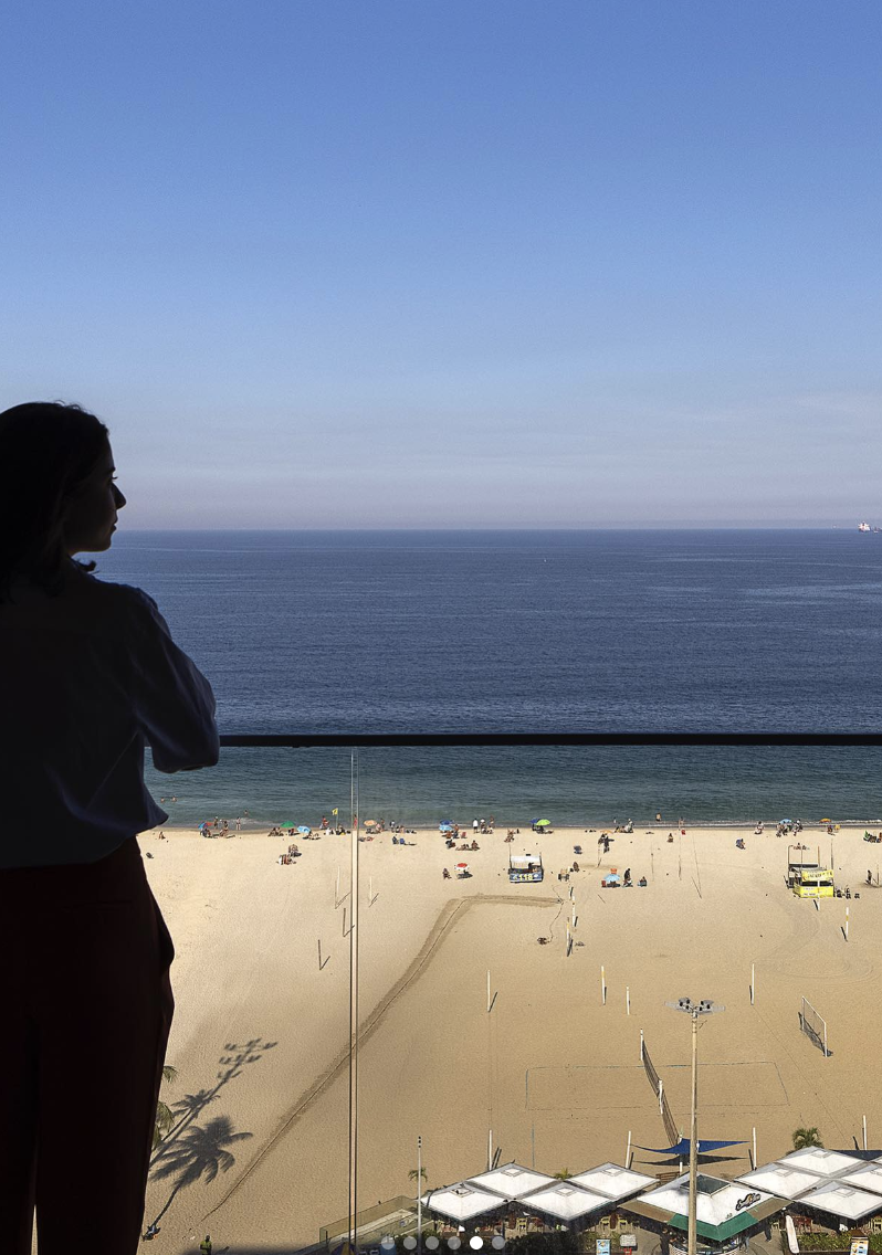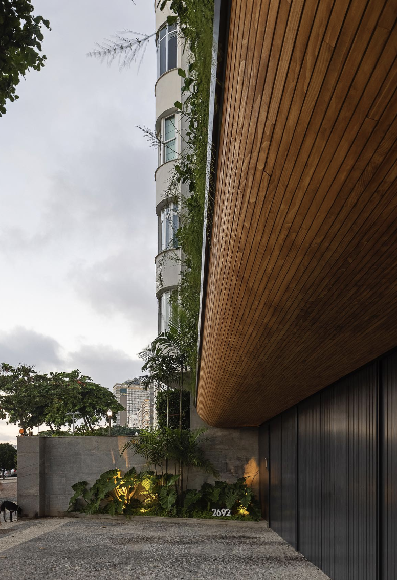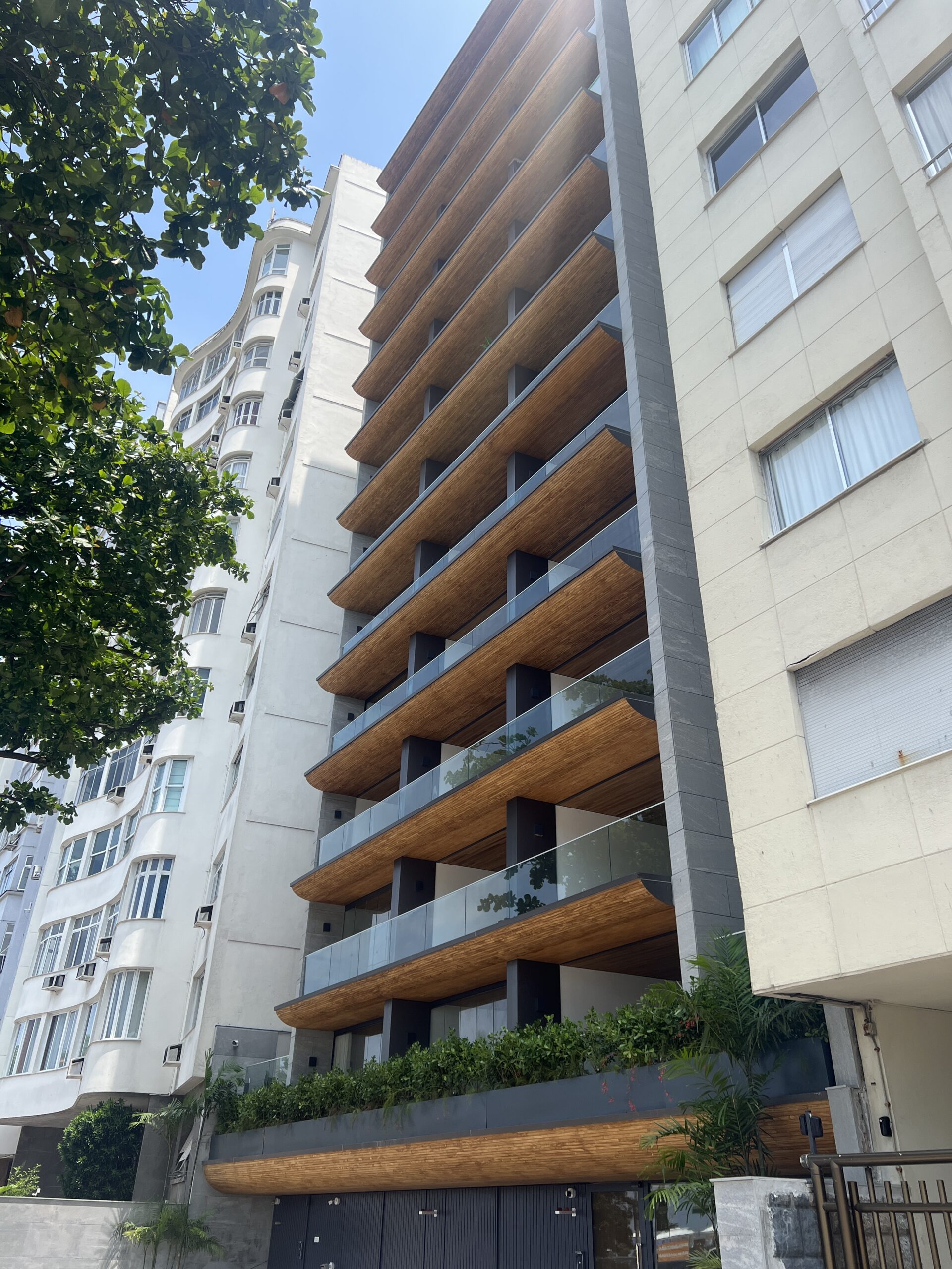 Localizado no ultimo terreno frente mar na praia de copacabana, esse lindo edifício projetado pela Bernardes arquitetura se destaca na orla por sua linda fachada em varandas curvas executadas em madeira Accoya