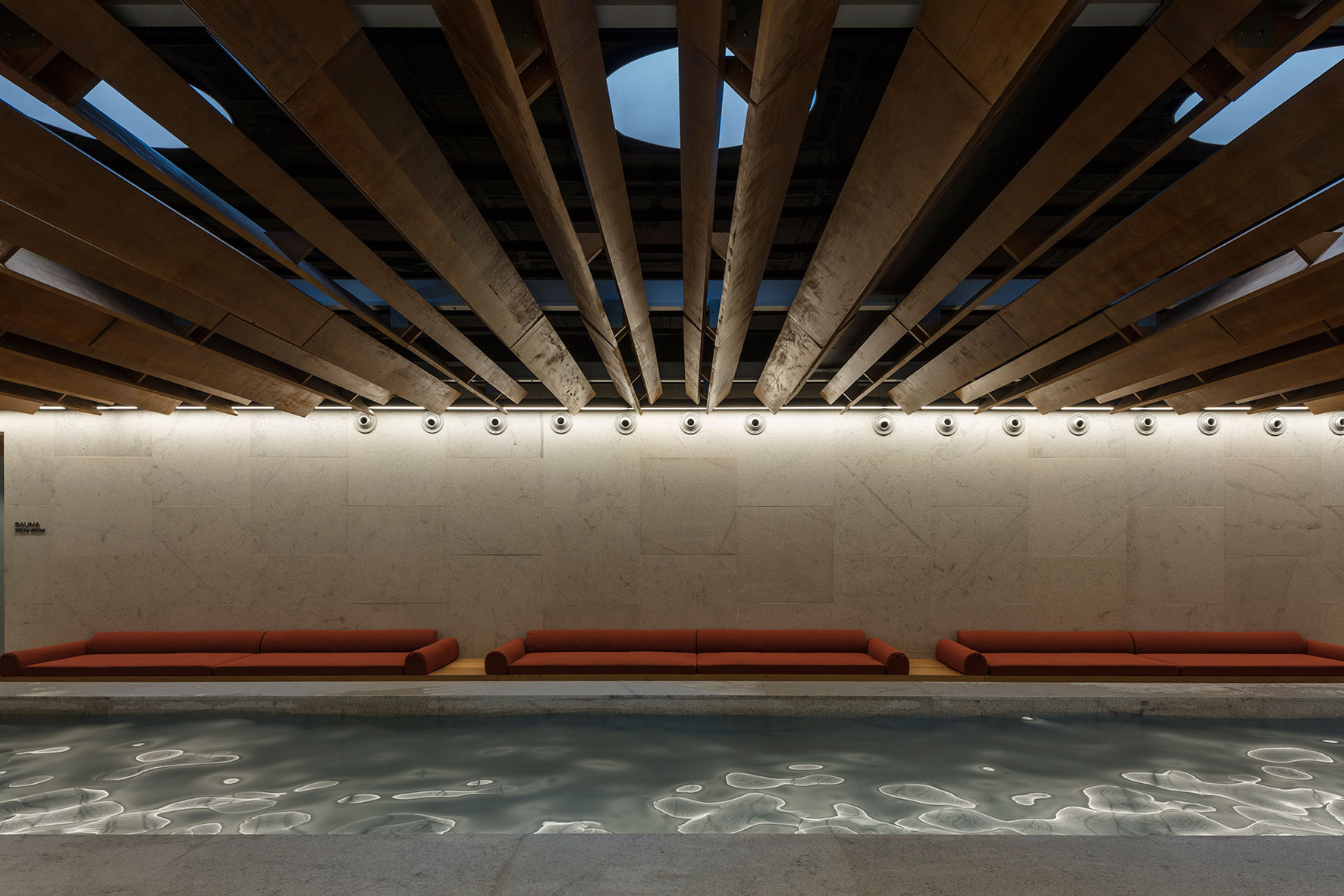 Brises de Fachada, Revestimentos das Testeiras e Sistema de forro acústica das piscinas e áreas úmidas
